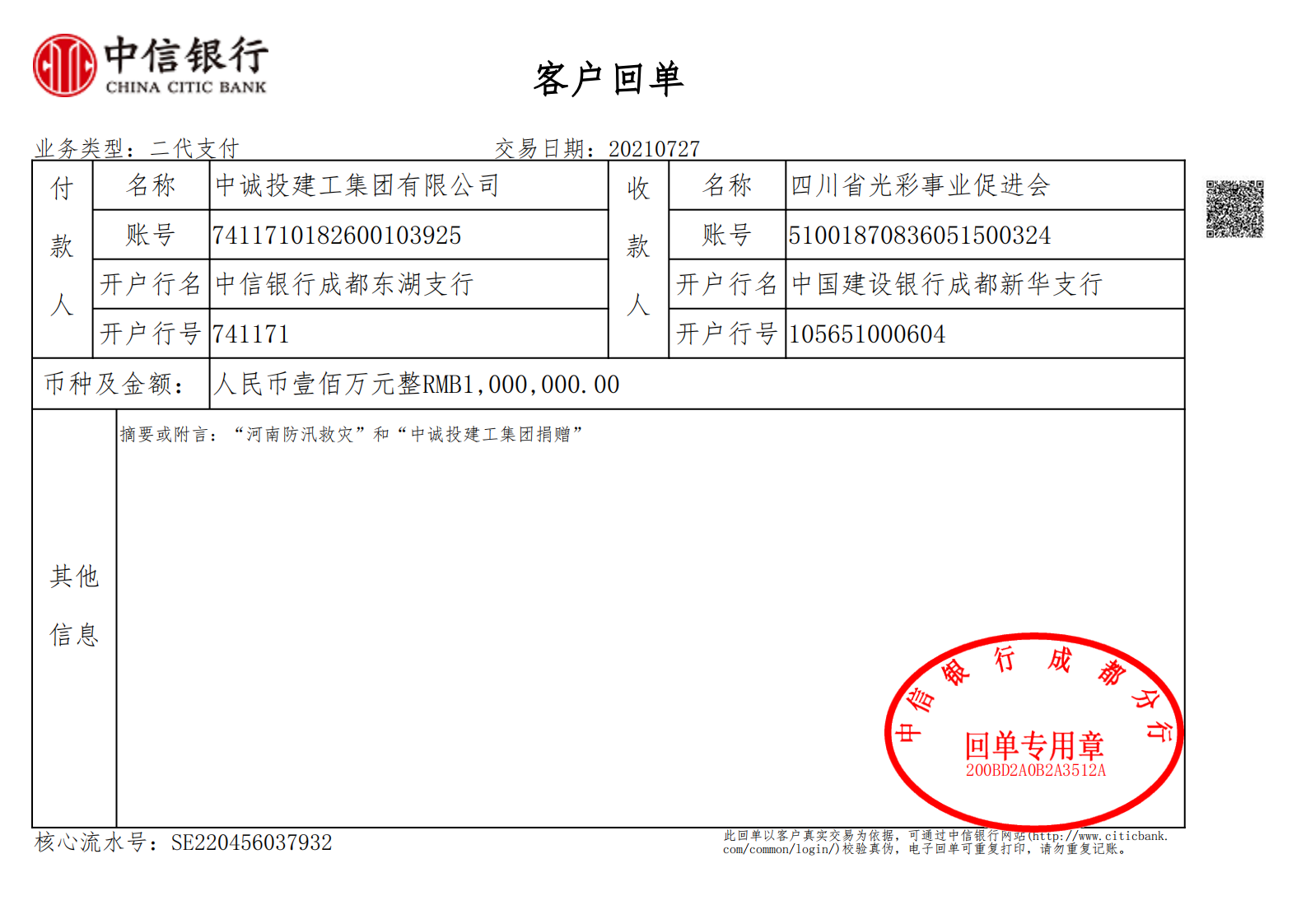 中誠投建工集團向河南災區捐款捐物500萬元