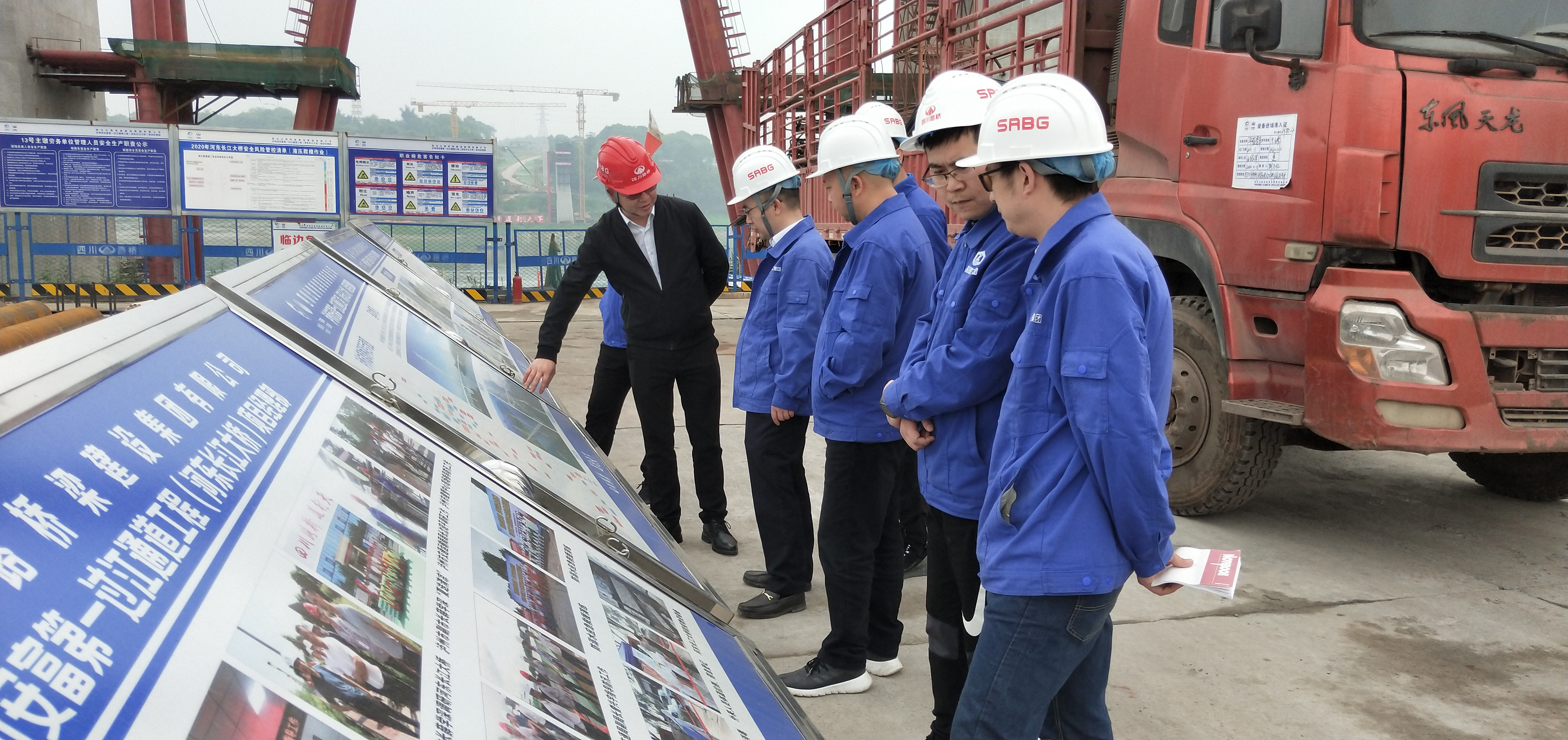 4月14日,在集團路橋公司總經理張德斌的帶領下,瀘州市政項目部管理人員前往四川路橋承建的瀘州河東長江大橋項目部施工現場進行觀
