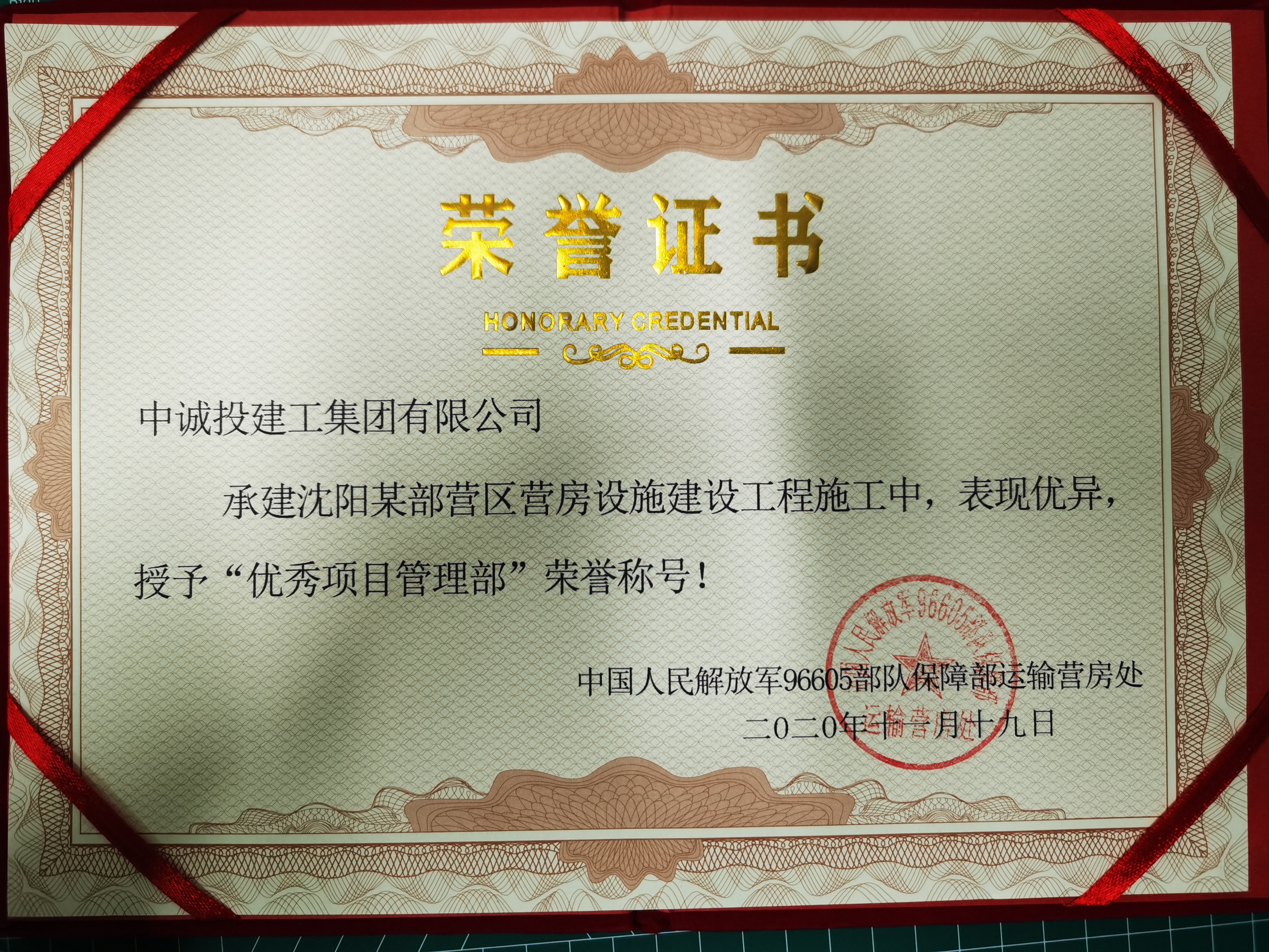 近日,集團公司遼寧分公司在承建遼寧省沈陽市某部隊營區營房施工建設中,以優異的成績榮獲該部授予優秀項目管理部榮譽。 該項目