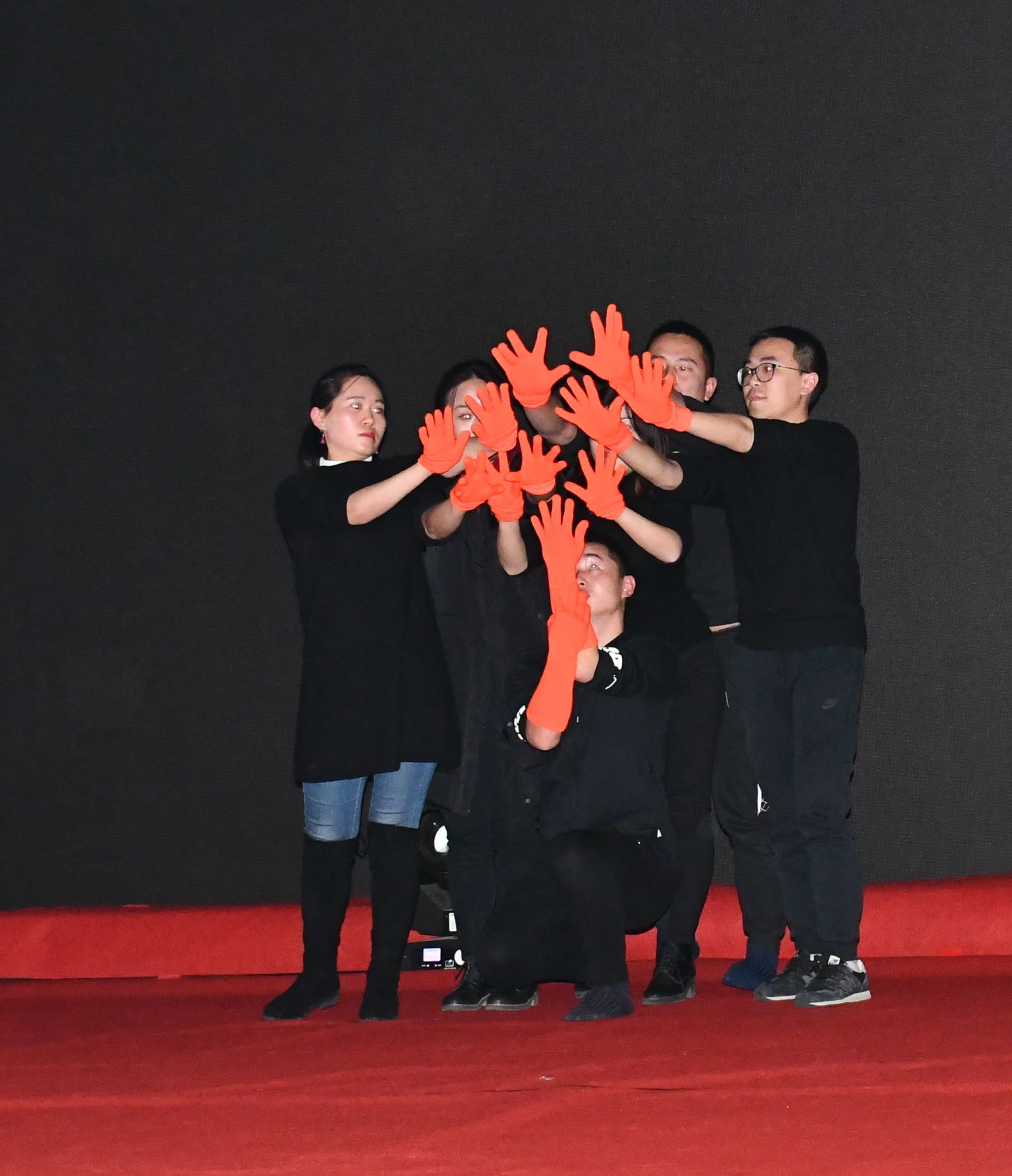 工程技術部帶來的《手影舞》,在幽曠婉轉的背景音樂中,通過手的組合和形體相輝映的方式表演,展現各種文字、圖標,同時也表達了深深的感情。