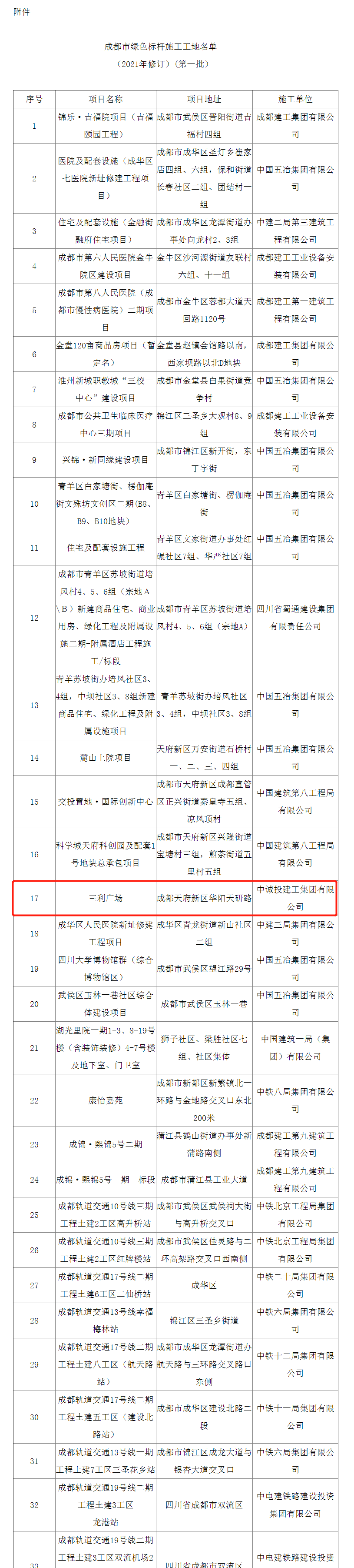 日前,成都市住房和城鄉(xiāng)建設(shè)局公布了成都市綠色標桿施工工地名單,由集團公司承建的三利廣場項目榮獲“綠色標桿施工工地”稱號。