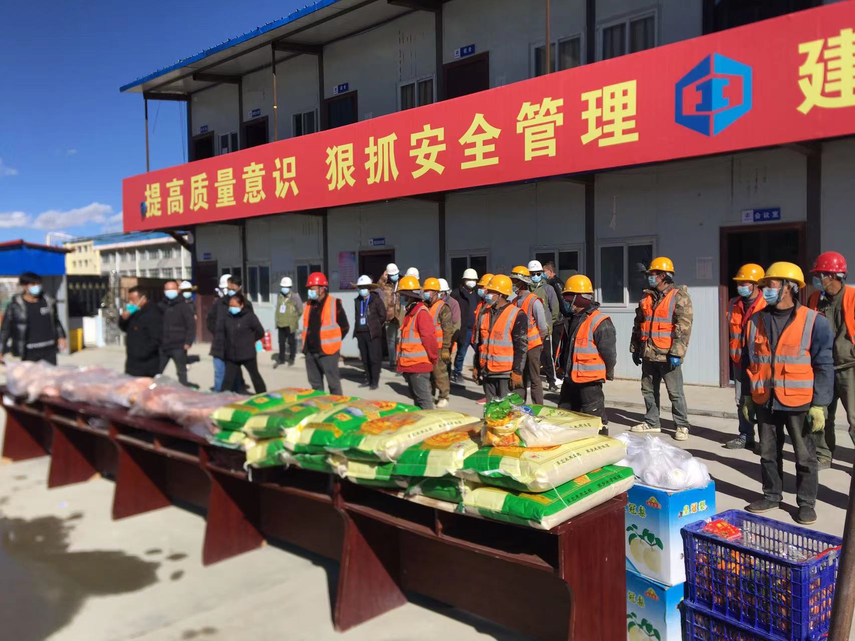 慰問現場,那曲市衛健委領導一行關切地詢問工人復工復產后的身體健康、生活及工作情況,并貼心地為大家送上大米、蔬菜、豬肉、水果等生活物資。“非常感謝領導們的關懷和慰問,我們倍感溫暖,我們會堅持按要求做好防疫工作,保證安全生產,請領導們放心。”項目部工人們真誠地向領導表示感謝。