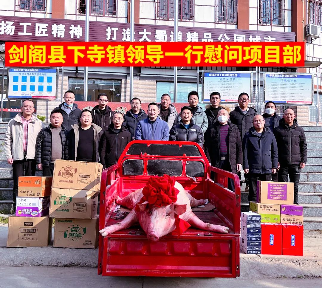 近日,劍閣縣下寺鎮黨委書記何建國、鎮長伍德利等領導一行親臨我司承建的劍閣縣寶龍山職教園區及配套基礎設施項目部(簡稱“寶龍山項目”),走訪慰問堅守在一線的建筑工人,對項目部全體員工一年來的辛勤工作表示感謝,希望項目部要合理安排春節期間的工作,充分做好春節期間各項保障工作。