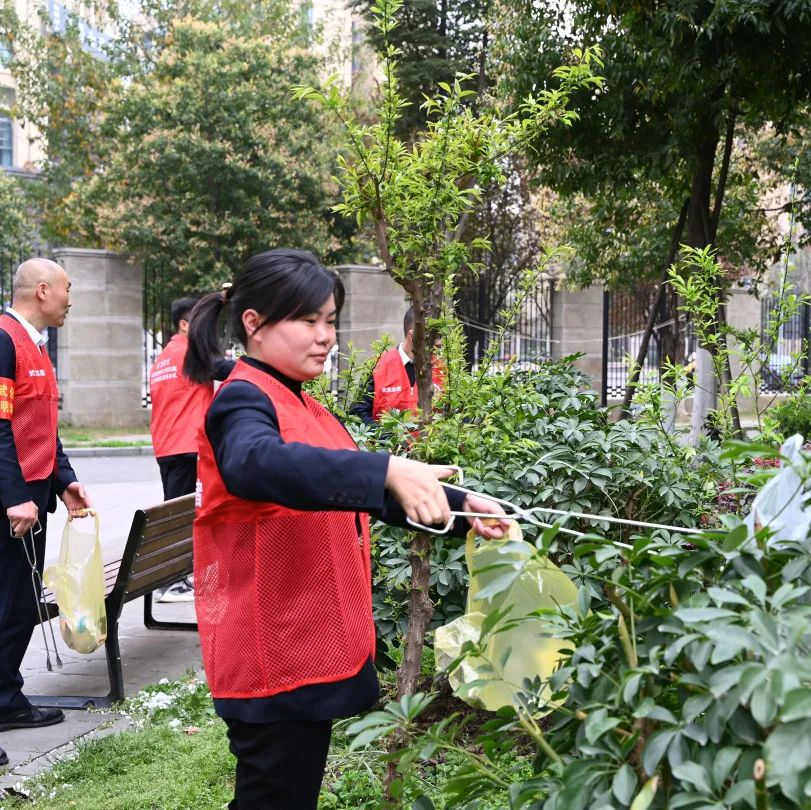 隨后,全體同志穿上紅馬甲,戴上紅袖章,在社區工作人員的引導下,迅速分為兩個小組,分別進入到七里社區居民點,對小區道路、綠化帶進行了“地毯式”清潔。大家彎著腰,拎著垃圾袋,一邊撿拾散落在道路和草坪的垃圾,一邊對隨地吐痰、亂扔垃圾、亂堆亂放等不文明行為進行勸導,引導居民自覺踐行文明行為,主動為創建文明典范城市、喜迎大運會營造良好的環境和氛圍。同時,大家還一起動手,將小區門口的共享單車進行規整擺放,為居民使用單車提供便利。