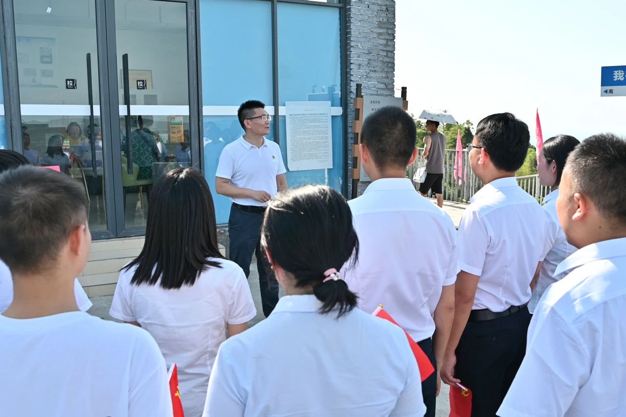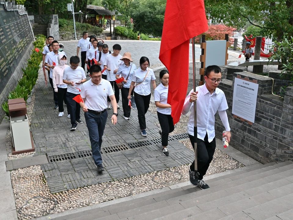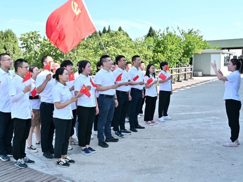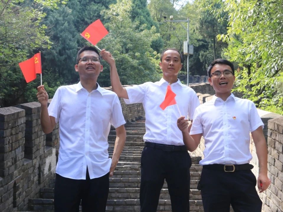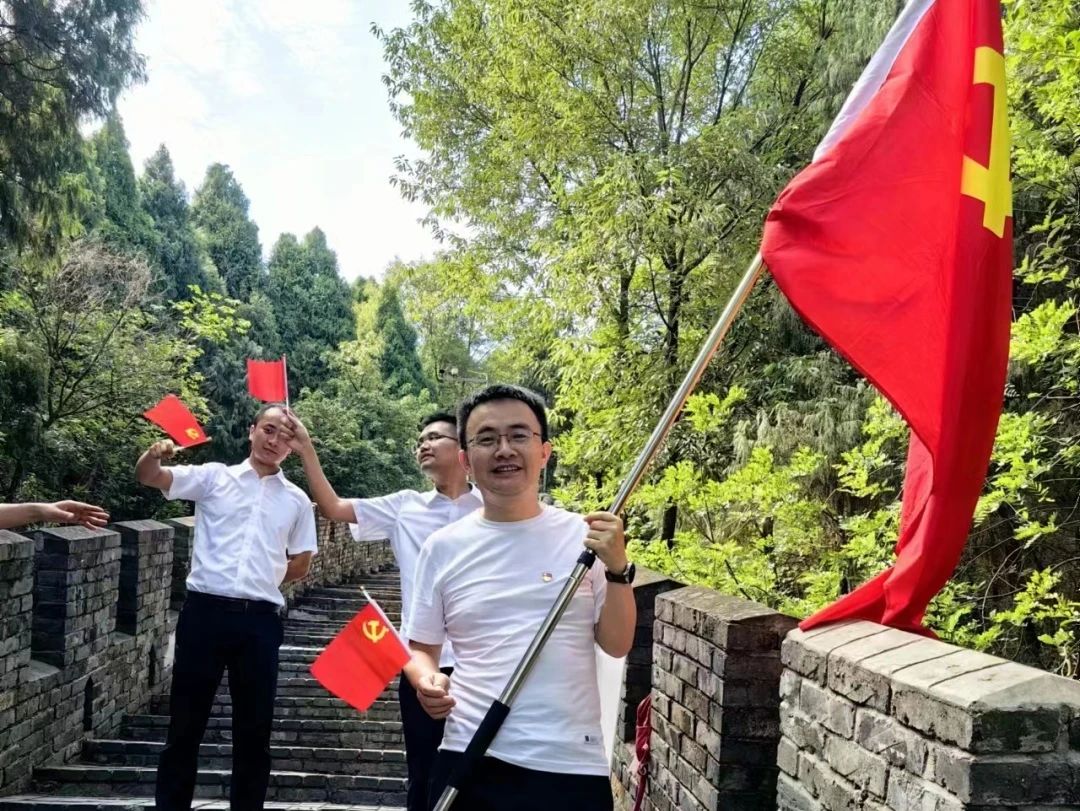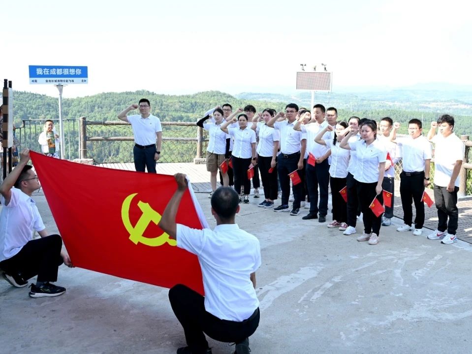 登頂后,黨委舉行了齊唱黨歌、重溫入黨誓詞系列活動。在黨委書記張阜文的帶領(lǐng)下,全體同志莊嚴(yán)肅立面向黨旗,高舉右手重溫入黨誓詞,重憶作為一名共產(chǎn)黨員的革命初心,在一聲聲的莊嚴(yán)誓言中更加堅定自己的理想信念,深切領(lǐng)悟黨員的歷史使命。