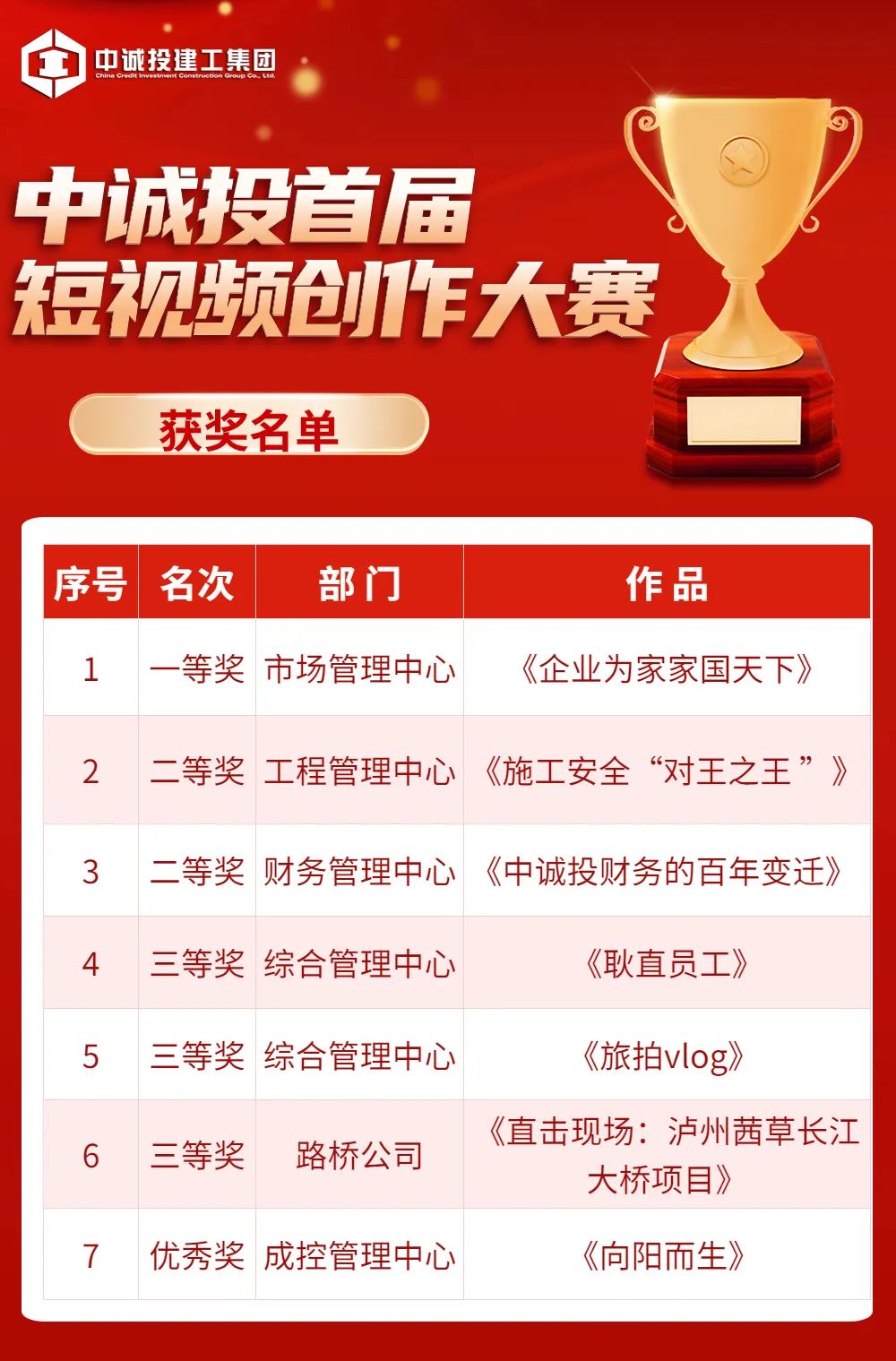 首屆短視頻創作大賽圓滿收官,標志著廣大員工對短視頻創作的積極嘗試與成功實踐。未來,中誠投將繼續為員工提供更多自我展示與創新實踐的平臺,不斷開拓創新,為集團公司高質量發展不斷注入創新發展動力源。