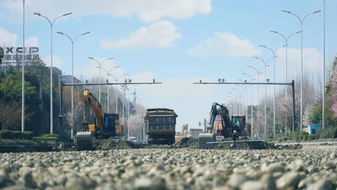 該項目位于成都市郫都區工業港北區,分為兩個標段,其中港泰大道全長約3.3公里,港北七路則為500米。主要建設內容包括對路面水穩層、油面進行重新鋪設,對路基進行刨銑、清理。