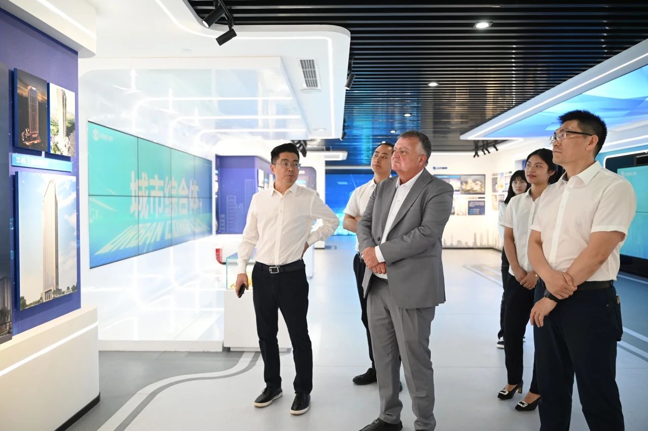 常務(wù)副總經(jīng)理張阜文陪同Avi Wermus,Thomas Sun參觀了中誠(chéng)投建工集團(tuán)展廳,聽取了企業(yè)發(fā)展歷程、工程榮譽(yù)、戰(zhàn)略布局、智慧化管理等方面的詳細(xì)介紹,對(duì)中誠(chéng)投進(jìn)行了深入了解和認(rèn)識(shí)。