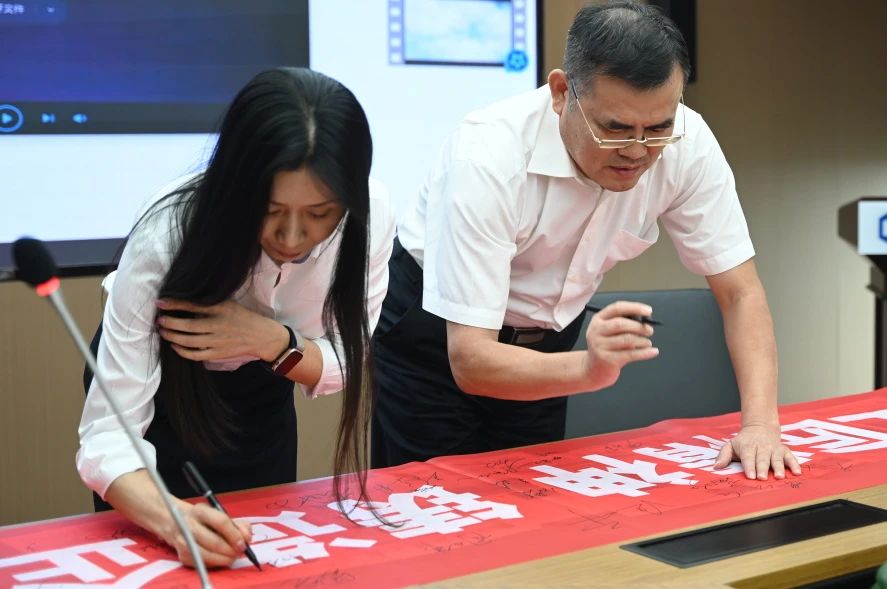 活動前,參加“質(zhì)量月”啟動會人員紛紛在主題橫幅上簽名,表達對活動的支持和對質(zhì)量管理的堅定決心。